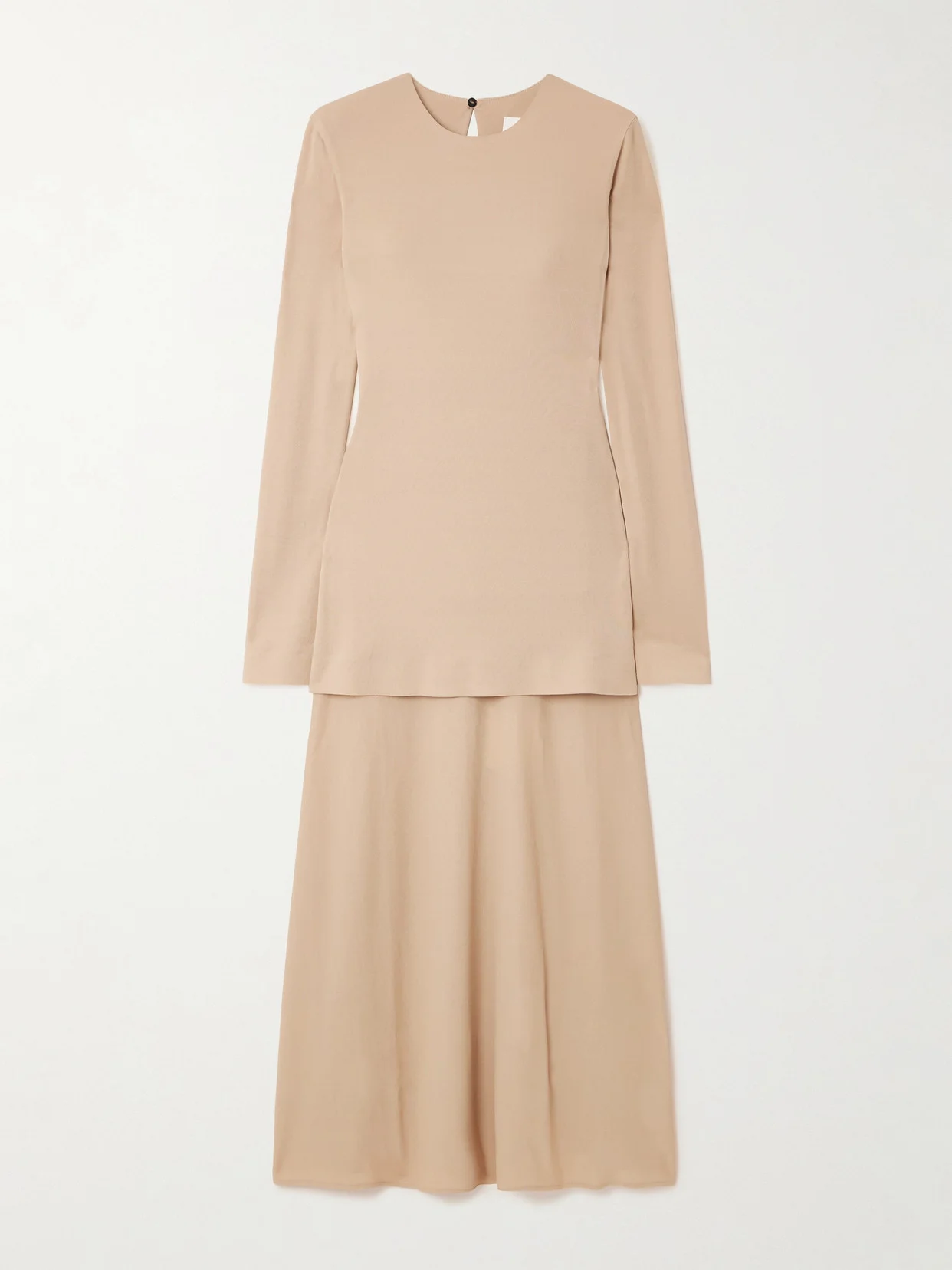 Jil Sander's dress is designed to look like two styles layered together. Made from crepe, it has a relaxed tunic-like top that sits prettily over a floaty maxi skirt. Wear yours with pumps or flats.