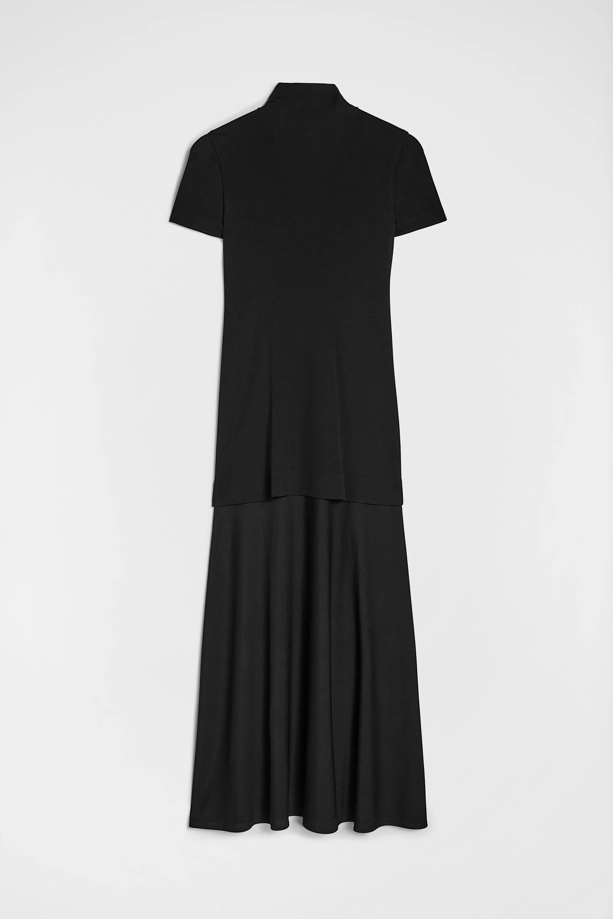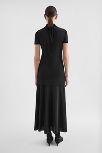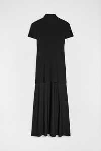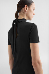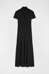 Short-sleeved viscose crepe dress with foulard collar to tie at the back Details - relaxed fit and calf-length - single button closure at back of neck - double-layer effect - foulard collar with back tie - fluid viscose crepe - 82% viscose-rayon 18% polyamide-nylon - made in Italy - StyleID: J04CT0111J65016001 Care - dry clean only - iron with care Fit - model is 177cm/5'9" and is wearing a size 34 DE - Please note that the physical label of the item will show the German size