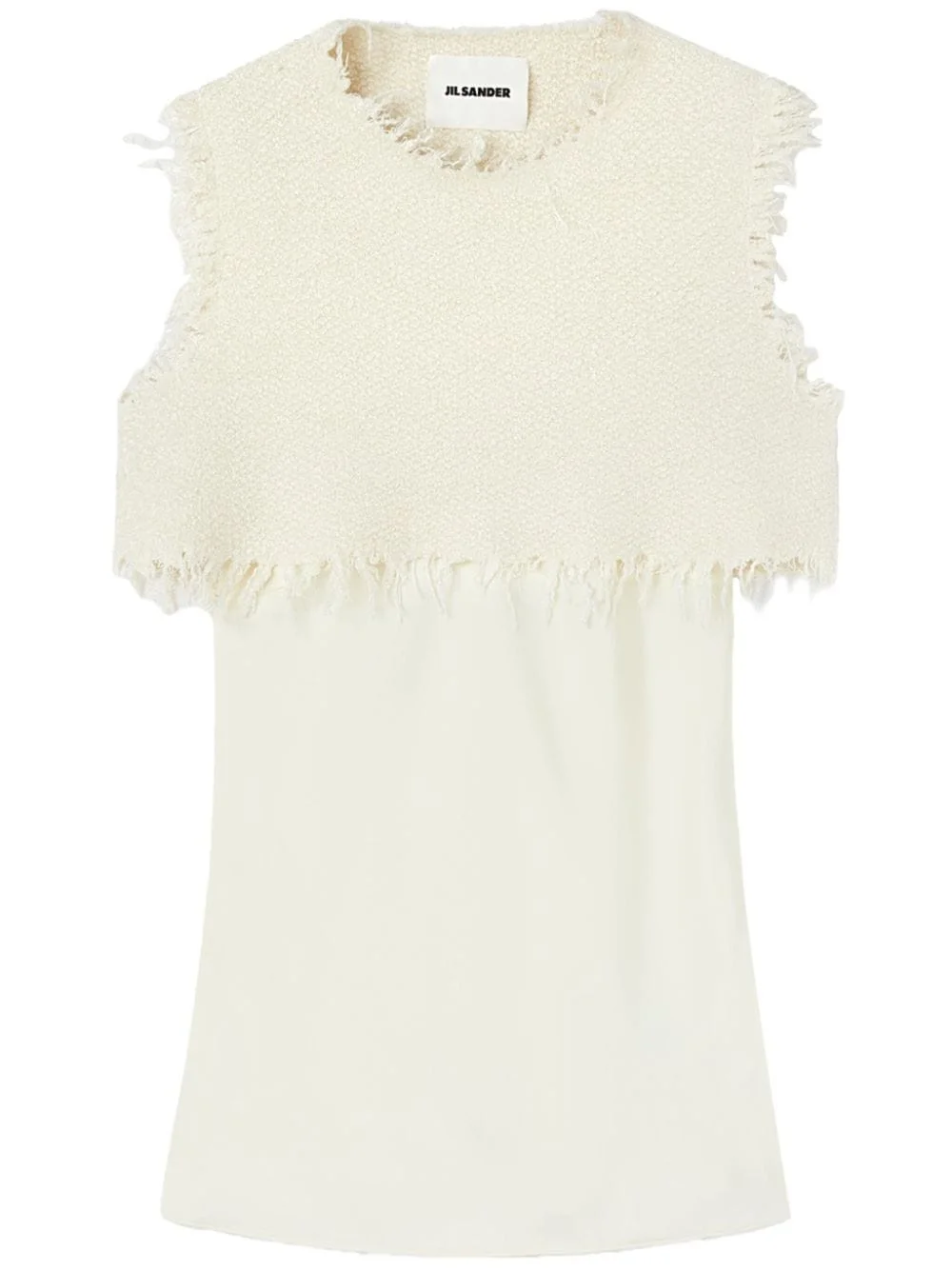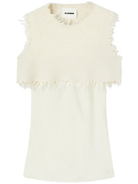 layered-design sleeveless top Highlights - White - Layered design - Knitted construction - Raw-cut edge - Crew neck - Sleeveless - Straight hem Made in Italy Composition Viscose 80%, Wool 10%, Silk 10%