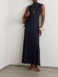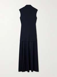 Layered jersey turtleneck maxi dress Navy