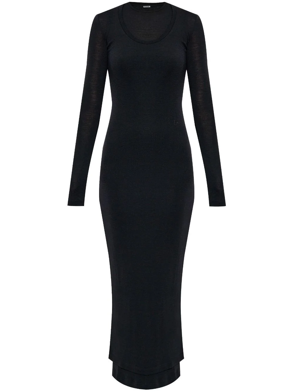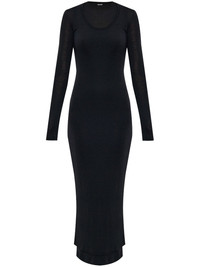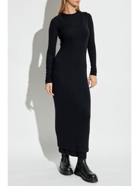 layered wool dress Highlights - Black - Virgin wool - Layered design - Crew neck - Long sleeves - Slim cut - Calf-length - Straight hem Made in Italy Composition Virgin Wool 100% Washing instructions Read Manufacturer Guidelines