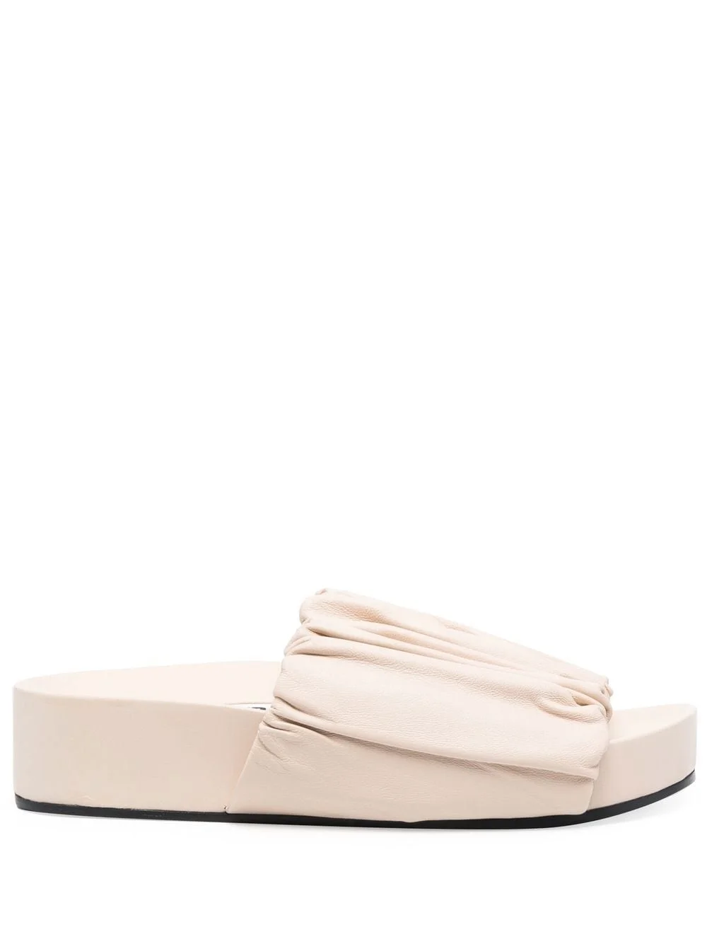 leather platform sandals Highlights - Light beige - Calf leather - Ruched detailing - Branded leather insole - Open toe - Platform sole - Slip-on style Made in Italy Composition Sole: Calf Leather 100% Outer: Calf Leather 100% Lining: Calf Leather 100% SIZE & FIT FittingInformation This piece fits small – take one size up Measurement HEEL 1.77 in(4.5 cm) Sole height 0.98 in(2.5 cm)