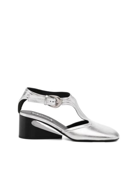 60mm leather pumps Highlights - Steel grey - Buckle-fastening ankle strap - Round toe - Branded footbed Made in Italy Composition Sole: Calf Leather 50%, Rubber 50% Lining: Nappa Leather 100% Outer: Calf Leather 100% SIZE & FIT Measurement HEEL 2.36 in(6 cm)