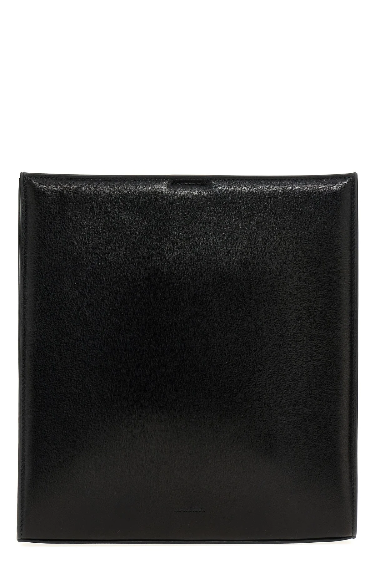 cod. J08WG0017P4845001 Leather shoulder strap with front logo, magnetic closure, braided shoulder strap. Color: Black Size & Fit: W 25.5 x H 27.5 x D 5 cm Composition: 100% calfskin leather (Bos Taurus)