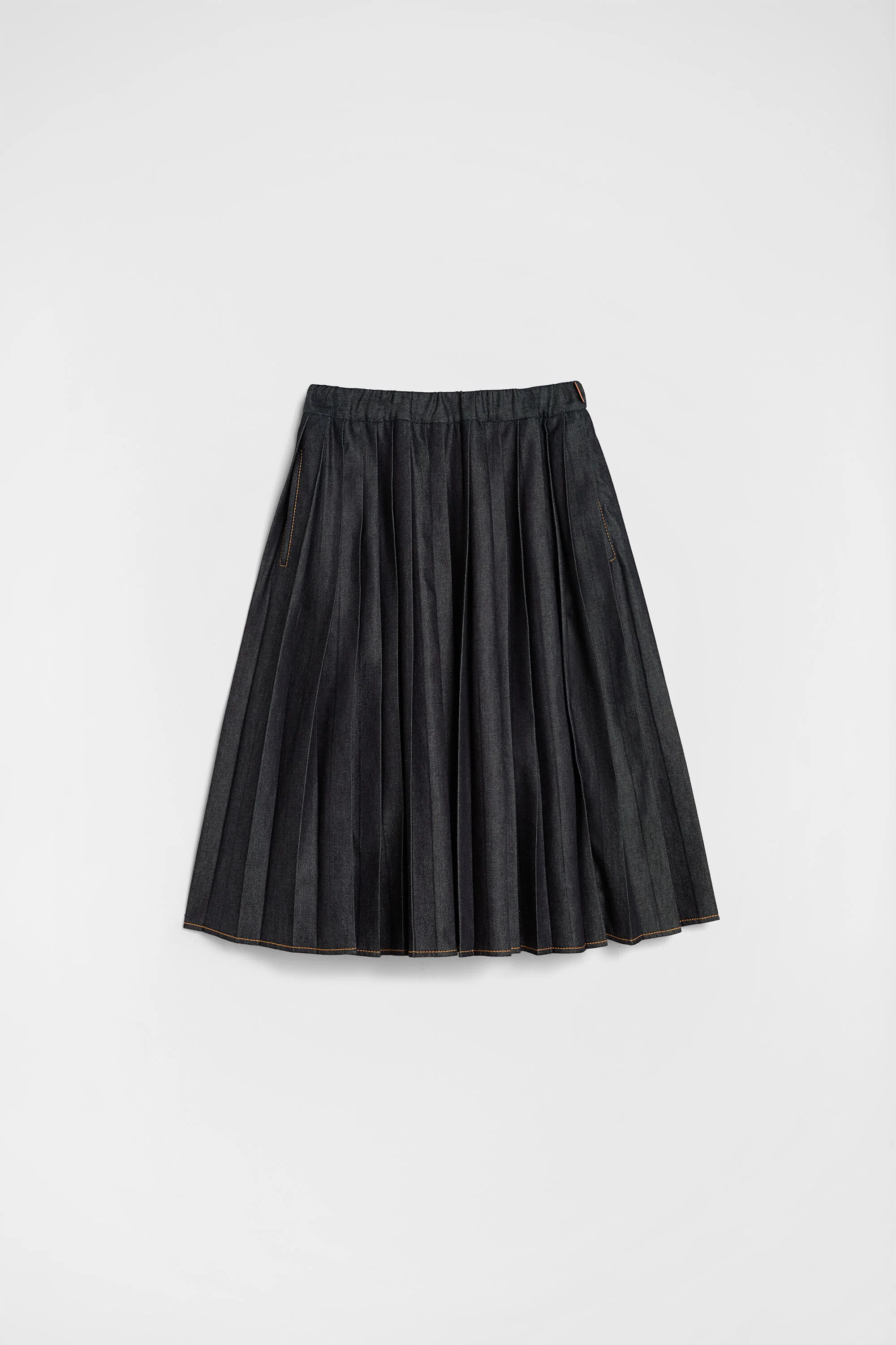 Lightweight raw denim skirt with pleats and embossed Jil Sander+ logo Details - regular waist and calf length - elasticated waist - side-seam pockets - side leather patch with embossed Jil Sander+ logo - fluid and lightweight raw denim - 72% cotton 28% viscose-rayon - made in Italy - StyleID: J40MA0180J46664010 Care - dry clean only - iron with care Fit - model is 177cm/5'9" and is wearing a size 34 DE - Please note that the physical label of the item will show the German size
