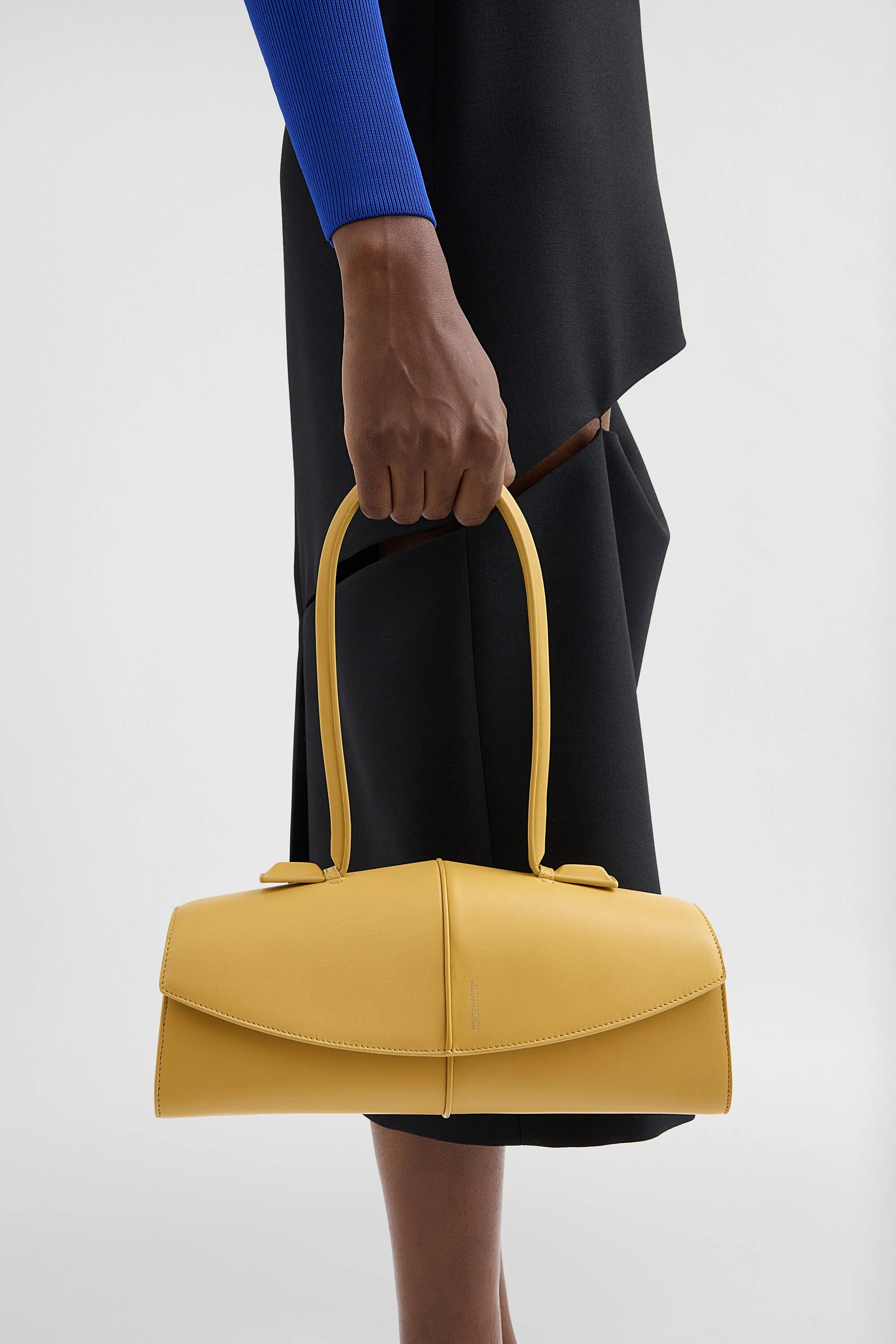 Leather shoulder bag with centre piping and embossed Jil Sander logo Details - single leather shoulder strap - inner card slot - magnetic button closure - nappa lining - embossed Jil Sander logo - 100% ovine leather - made in Italy - StyleID: J08ZH0104P9079253