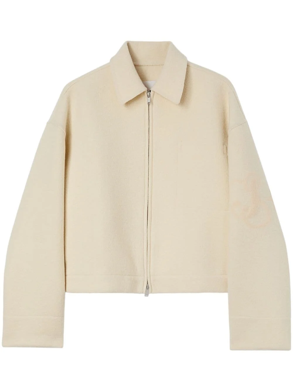 logo-embellished virgin-wool jacket Highlights - Light beige - Virgin wool - Logo embellishment - Classic collar - Two-way zip fastening - Long sleeves - Chest patch pocket - Straight hem Made in Italy Composition Virgin Wool 100%