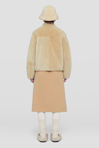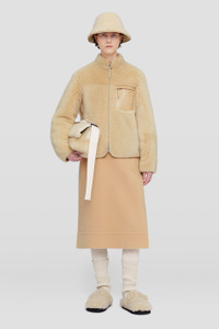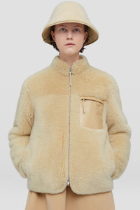 Shearling blouson with embossed Jil Sander logo Details - boxy fit - front zip closure - front single pocket with zip closure - embossed Jil Sander logo on the pocket - vegetable-tanned leather hems - soft shearling - 100% lamb fur - made in Italy - StyleID: J40BN0111J07113269 Care - dry clean only Details - model is 177cm/5'9" and is wearing a size 34 DE