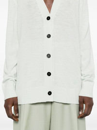 logo-embroidered cardigan Highlights - Pastel green - Front button fastening - Ribbed cuffs and hem - V-neck - Long sleeves Made in Italy Composition Virgin Wool 100% SIZE & FIT Model measurements Height 5 ft 11 in(1.8 m) Bust/Chest 32.67 in(83 cm) Hips 36.22 in(92 cm) Waist 24.4 in(62 cm) FittingInformation Designed to be unstructured, offering a loose fit throughout The ribbed hem offers a close, comfortable fit Made with a midweight knit, this piece offers some stretch