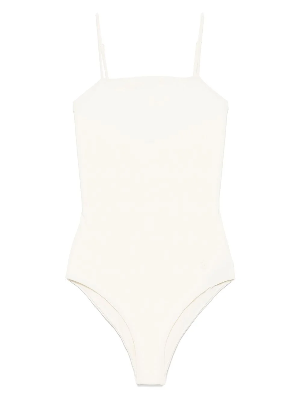 logo-embroidered swimsuit Highlights - Light beige - Adjustable spaghetti straps - Square neck - Be mindful to try on swimwear over your own garments. Made in Italy Composition Polyamide 72%, Elastane 28% Washing instructions Hand Wash
