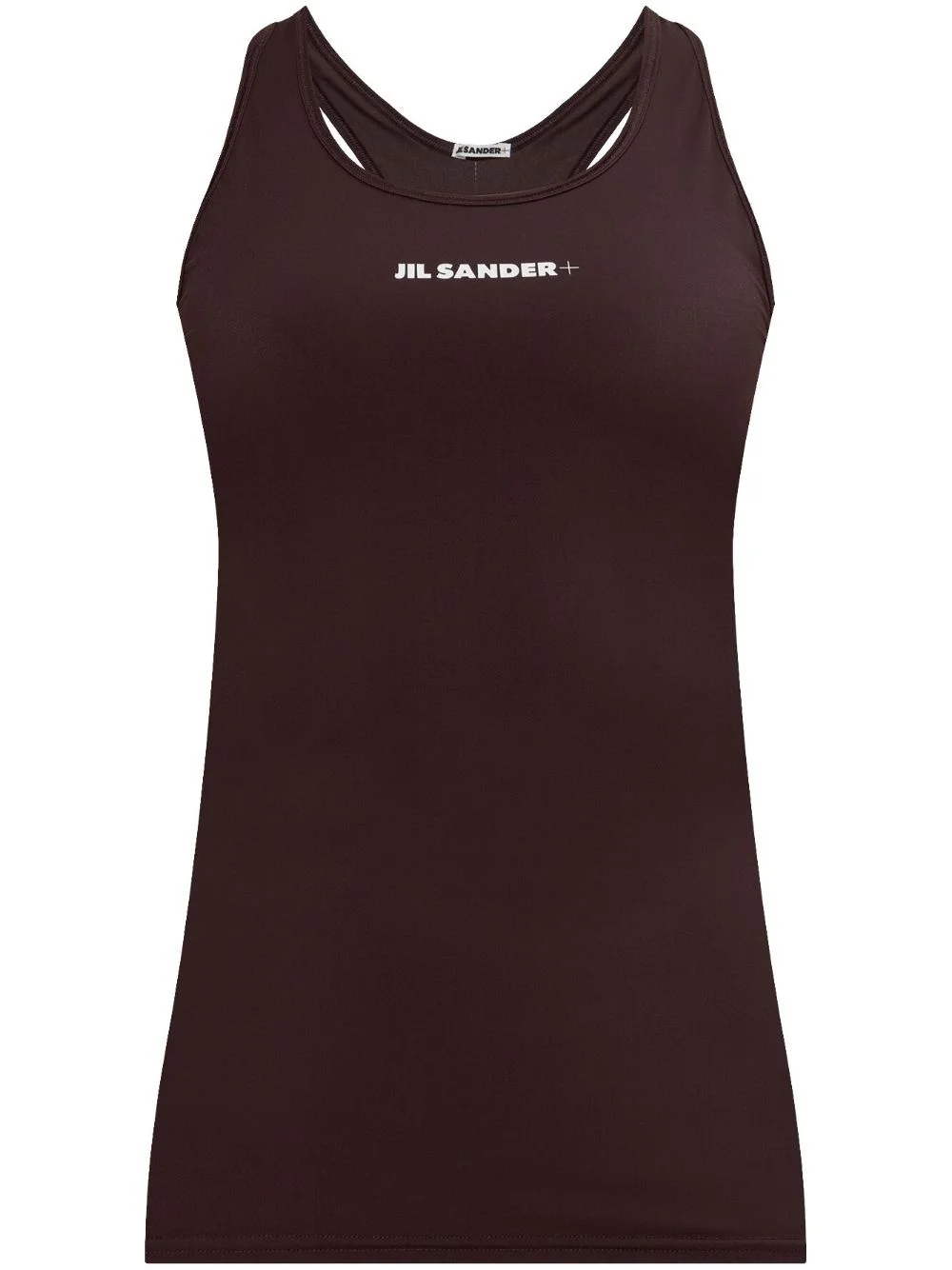 logo-embroidered tank top Highlights - Coffee brown - Racerback - Straight hem - Scoop neck Made in Italy Composition Polyamide 100% SIZE & FIT FittingInformation Designed for a slim fit that sits just away from the body offering a close yet comfortable fit Made from a midweight non-stretch fabric, this piece offers minimal elasticity when worn