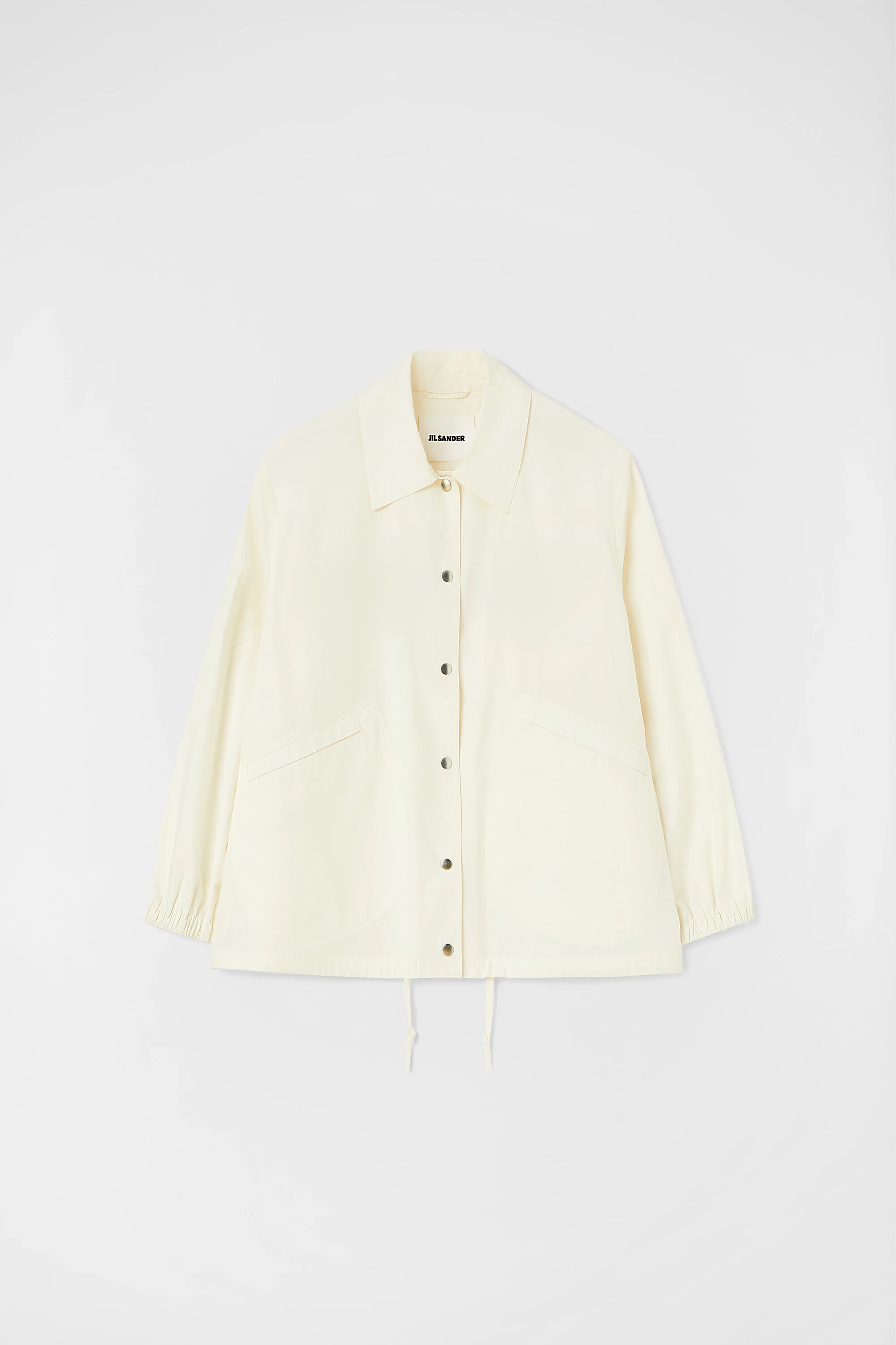Lightweight cotton blouson jacket with printed Jil Sander logo on the back Details - relaxed fit and boxy shape - flat collar - snap button closure - jetted pockets - elasticated cuffs - adjustable drawstring on hem - printed Jil Sander logo on the back - pack-away bag with printed logo included - lightweight water repellent cotton - 100% cotton - made in Italy - StyleID: J04AM0001J45063103 Care - dry clean only - iron with care Fit - model is 177cm/5'9" and is wearing a size 34 DE - Please note that the physical label of the item will show the German size