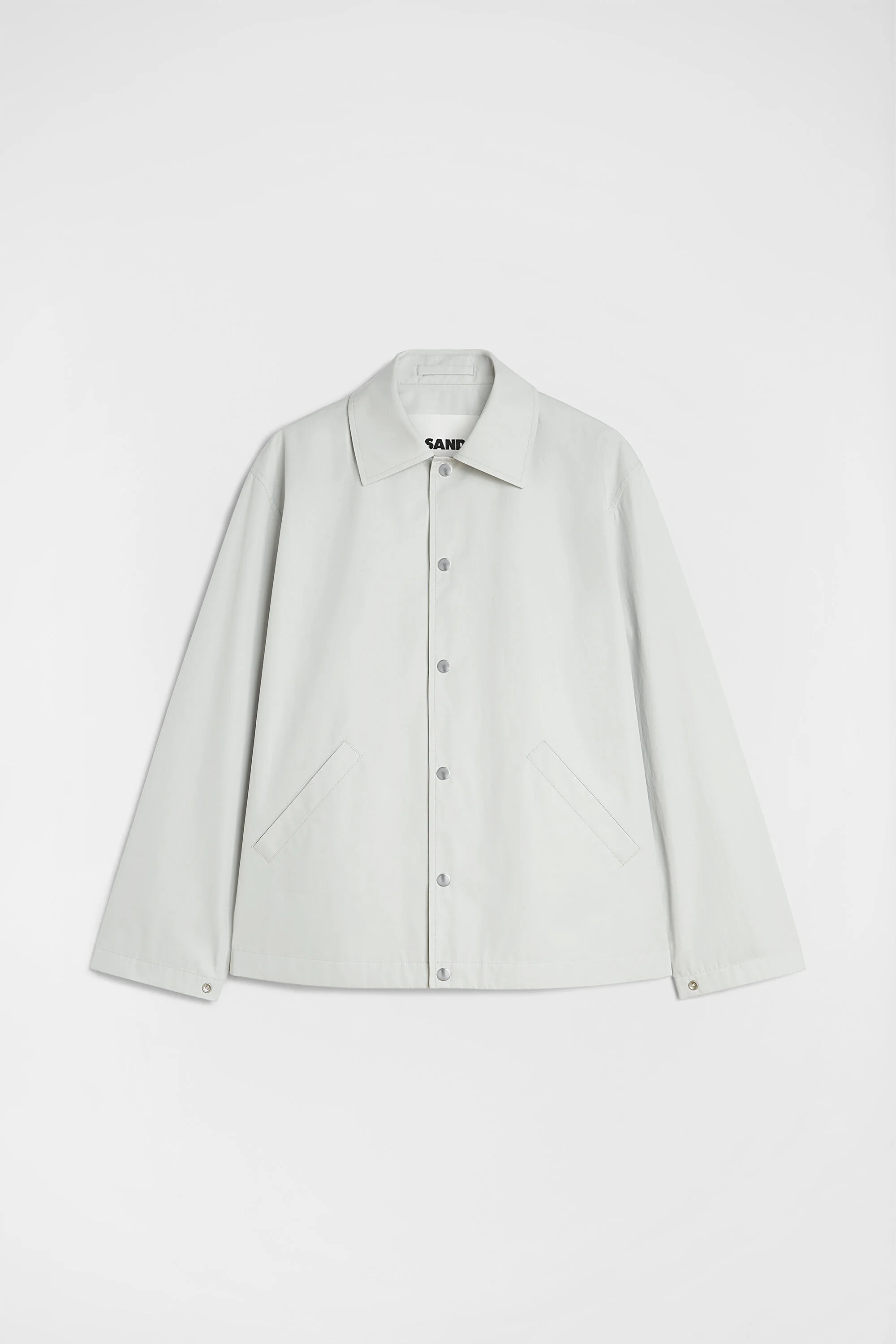 Compact cotton taffeta jacket with printed Jil Sander logo on the back Details - relaxed fit and boxy shape - flat collar and dropped shoulders - snap button closure - two jetted pockets - adjustable button closure cuff - Jil Sander logo printed on the back - compact cotton taffeta - 100% cotton - made in Italy - StyleID: J53BN0004J45306058 Care - dry clean only - iron with care Fit - model is 177cm/5'9" and is wearing a size S - Please note that the physical label of the item will show the international size