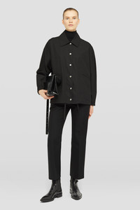 Lightweight cotton blouson jacket with printed Jil Sander logo on the back Details - relaxed fit and boxy shape - flat collar - snap button closure - jetted pockets - elasticated cuffs - adjustable drawstring on hem - printed Jil Sander logo on the back - pack-away bag with printed logo included - lightweight water repellent cotton - 100% cotton - made in Italy - StyleID: J04AM0001J45063001 Care - dry clean only - iron with care Fit - model is 177cm/5'9" and is wearing a size 34 DE - Please note that the physical label of the item will show the German size