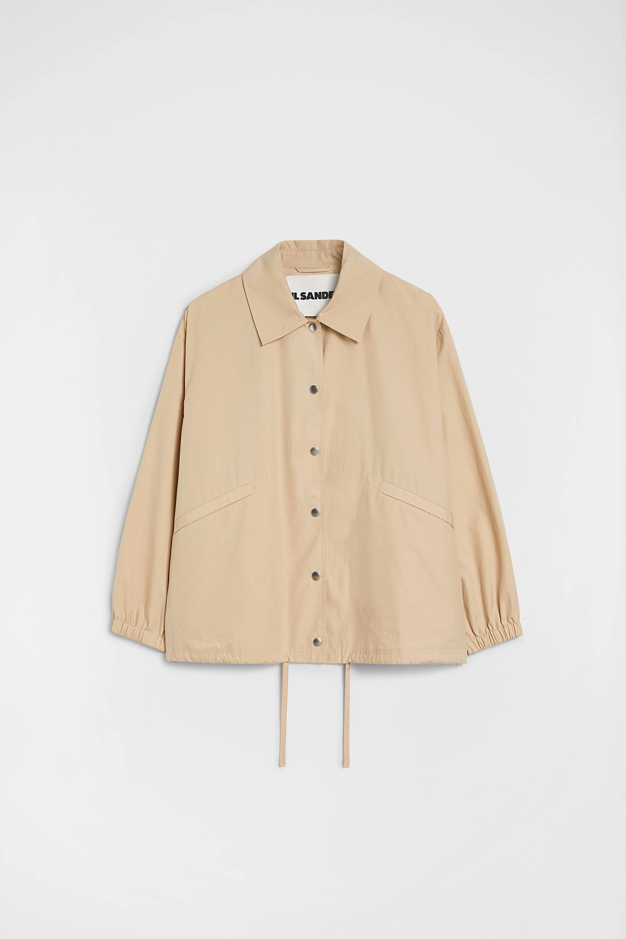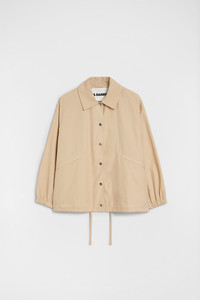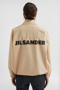 Lightweight cotton poplin blouson jacket with printed Jil Sander logo on the back Details - relaxed fit and boxy shape - flat collar - snap button closure - jetted pockets - elasticated cuffs - adjustable drawstring on hem - printed Jil Sander logo on back - pack-away bag with printed logo included - lightweight water repellent cotton poplin - 100% cotton - made in Italy - StyleID: J04AM0001J45026236 Care - hand wash - iron with care Fit - model is 177cm/5'9" and is wearing a size 34 DE - Please note that the physical label of the item will show the German size