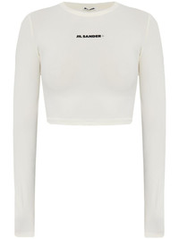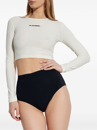 logo-print bikini top Highlights - White - Crew neck - Long sleeves - Be mindful to try on swimwear over your own garments. Made in Italy Composition Polyamide 72%, Spandex/Elastane 28%