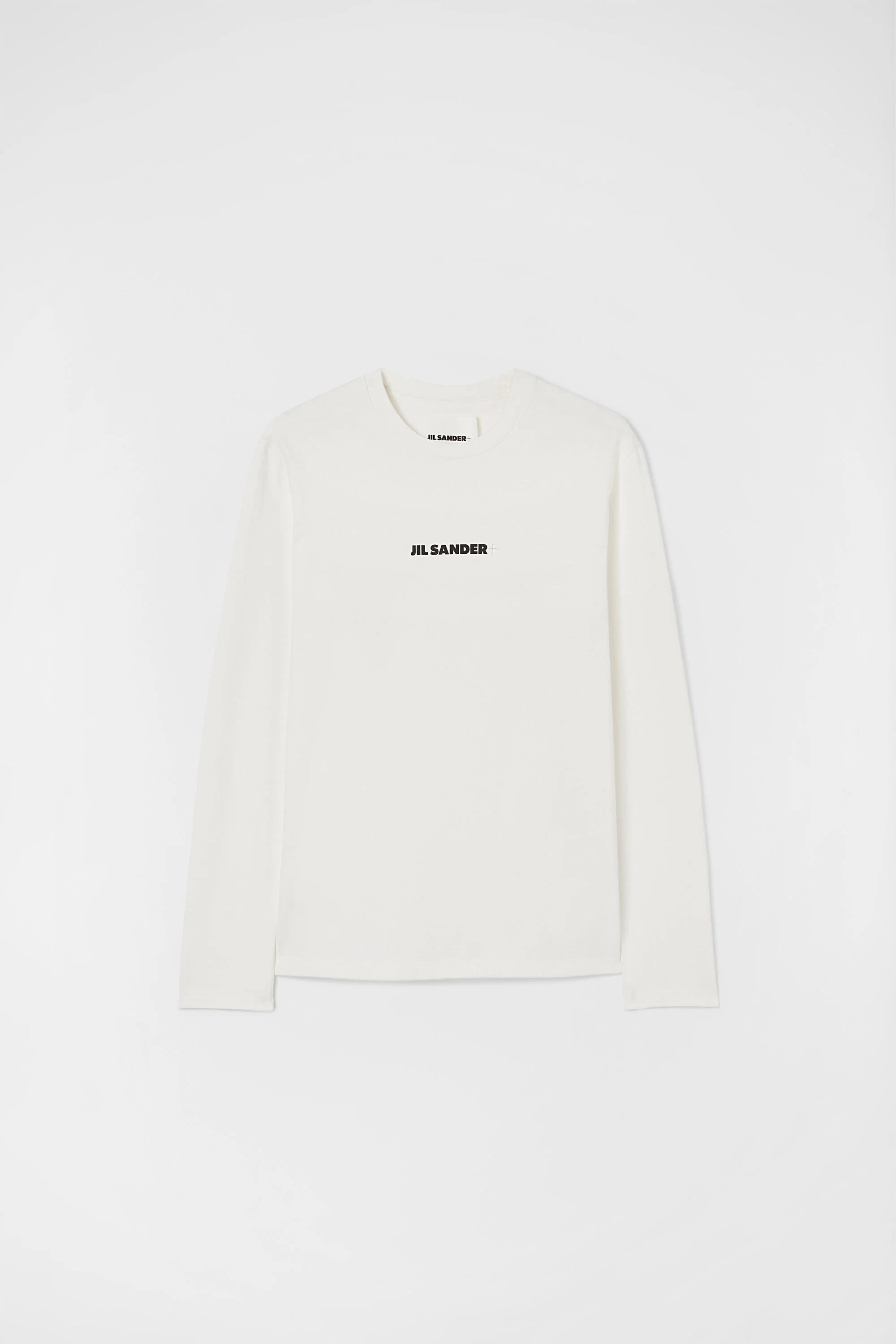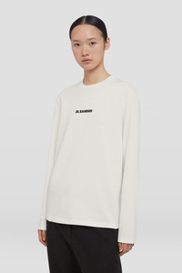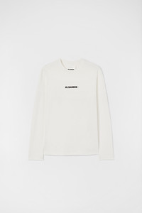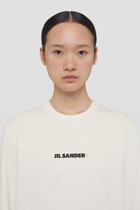 Long-sleeved t-shirt with Jil Sander+ logo printed Details - relaxed fit - crew-neck and long sleeves - printed Jil Sander+ logo on chest - lightweight cotton jersey - 100% cotton - made in Italy - StyleID: J40GC0117J20103102 Care - hand wash - iron with care Fit - model is 177cm/5'9" and is wearing a size S - Please note that the physical label of the item will show the international size