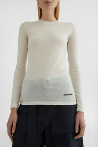 Cotton jersey t-shirt with printed Jil Sander+ logo on bottom side Details - slim fitted - long sleeves - round neck - bottom side printed Jil Sander+ logo - 55% polyester, 45% virgin wool - made in Italy - StyleID: J40GC0022J70021102 Care - dry clean only Fit - model is 177cm/5'9" and is wearing a size S - Please note that the physical label of the item will show the international size
