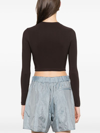 logo-print T-shirt Highlights - Chocolate brown - Crew neck - Long sleeves - Cropped Made in Italy Composition Outer: Polyamide 72%, Elastane 28% SIZE & FIT Model measurements Height 5 ft 10 in(1.78 m) Bust/Chest 33.85 in(86 cm) Hips 36.61 in(93 cm) Waist 26.77 in(68 cm) FittingInformation Designed for a close fit throughout Made from a midweight stretch fabric, this piece offers elasticity and flexibility when worn