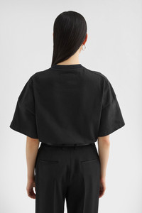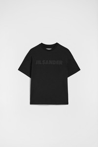 Stiff cotton jersey t-shirt with Jil Sander tone-on-tone printed logo Details - oversized and long fit - we recommend taking one size down - dropped shoulders - short sleeves - ribbed crew neck - tonal Jil Sander printed logo on front - thick, stiff cotton jersey - 100% cotton - made in Italy - StyleID: J03GC0137J20243001 Care - dry clean only - iron with care Fit - model is 177cm/5'9" and is wearing a size S - Please note that the physical label of the item will show the international size