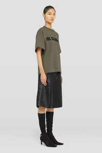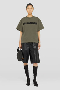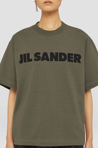 Cotton jersey t-shirt with Jil Sander printed logo Details - oversized fit and boxy shape - dropped shoulders - short sleeves - crew neck - Jil Sander printed logo on front - stiff lightweight cotton jersey - 100% cotton - made in Italy - StyleID: J02GC0001J20215312 Care - hand wash - iron with care Details - model is 177cm/5'9" and is wearing a size S - Please note that the physical label of the item will show the international size