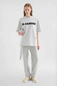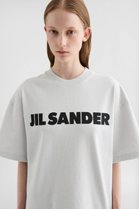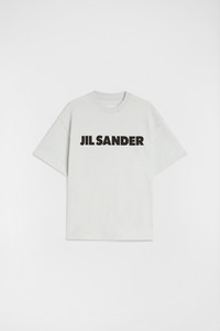 Stiff cotton jersey t-shirt with printed Jil Sander logo Details - oversized fit and boxy shape - dropped shoulders - short sleeves - ribbed crew neck - Jil Sander printed logo on front - stiff lightweight cotton jersey - 100% cotton - made in Italy - StyleID: J53GC0009J45148058 Care - hand wash - iron with care Fit - model is 177cm/5'9" and is wearing a size S - Please note that the physical label of the item will show the international size