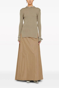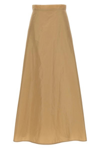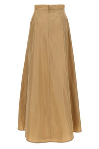 cod. J03MA0167J70005236 Long skirt in technical fabric, flared, high waist with pockets, zip hook and back button closure. Color: Beige Size & Fit: True to size fit German sizing Composition: 100% polyester