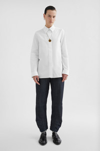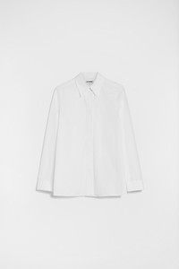 Long-sleeved organic cotton poplin shirt with embroidered Jil Sander monogram Details - relaxed fit - classic collar and cuffs - front closure with concealed buttons - embroidered Jil Sander monogram - organic cotton poplin - 100% cotton - made in Italy - StyleID: J05DL0108J45001100 Care - dry clean only - iron with care Fit - model is 177cm/5'9" and is wearing a size 34 DE - Please note that the physical label of the item will show the German size