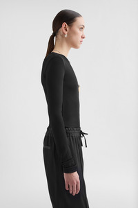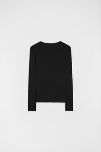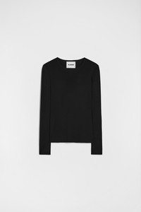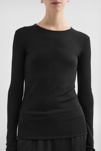 Long-sleeved viscose crepe t-shirt Details - fitted shape - crew neck - fluid viscose crepe - 82% viscose, 18% polyamide - made in Italy - StyleID: J04NC0003J65016001 Care - dry clean only - iron with care Fit - model is 177cm/5'9" and is wearing a size 34 DE - Please note that the physical label of the item will show the German size