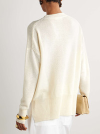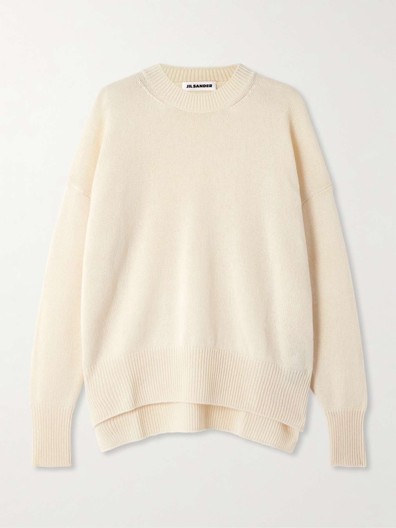 EDITORS'NOTES There are a few key design details that make this Jil Sander's sweater so special. It's knitted from soft, fine wool and has super dropped shoulders and slits at the side, so it hangs beautifully on the frame. Note, too, the elongated ribbing at the hem, which encourages that gorgeous drape. SIZE & FIT Model measurements: - Fits true to size, take your normal size - Designed for a loose fit - Dropped shoulder seam - Lightweight knit - Model is 180cm/ 5'11" and is wearing a size Small - Bust: 86cm/ 34" - Waist: 65cm/ 25.5" - Hip: 90cm/ 35.5" DETAILS & CARE - Off-white wool - Slips on - 100% wool - Dry clean