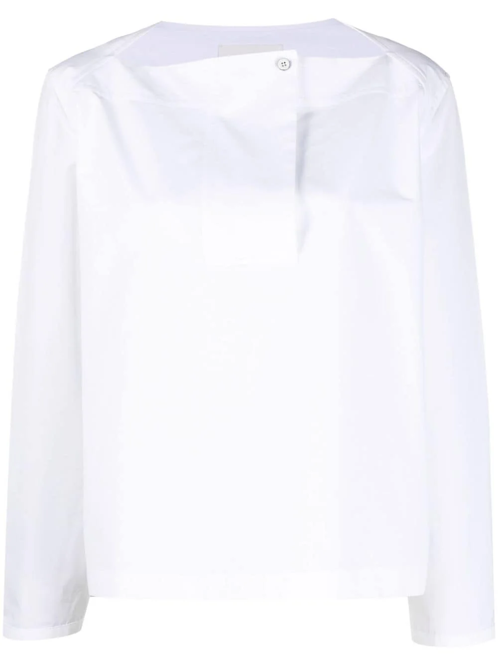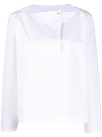 long-sleeved cotton blouse Highlights - Optical white - Cotton - Wide neck - Off-centre front button fastening - Long sleeves - Buttoned cuffs - Straight hem Made in Italy Composition Cotton 100% SIZE & FIT Model measurements Height 5 ft 11 in(1.8 m) Bust/Chest 33.07 in(84 cm) Hips 37.4 in(95 cm) Waist 25.19 in(64 cm) Measurement LENGTH 23.62 in(60 cm) FittingInformation Designed to be unstructured, offering a loose fit throughout Made from a lightweight non-stretch fabric This piece fits true to size – take your usual size Washing instructions Dry Clean Only