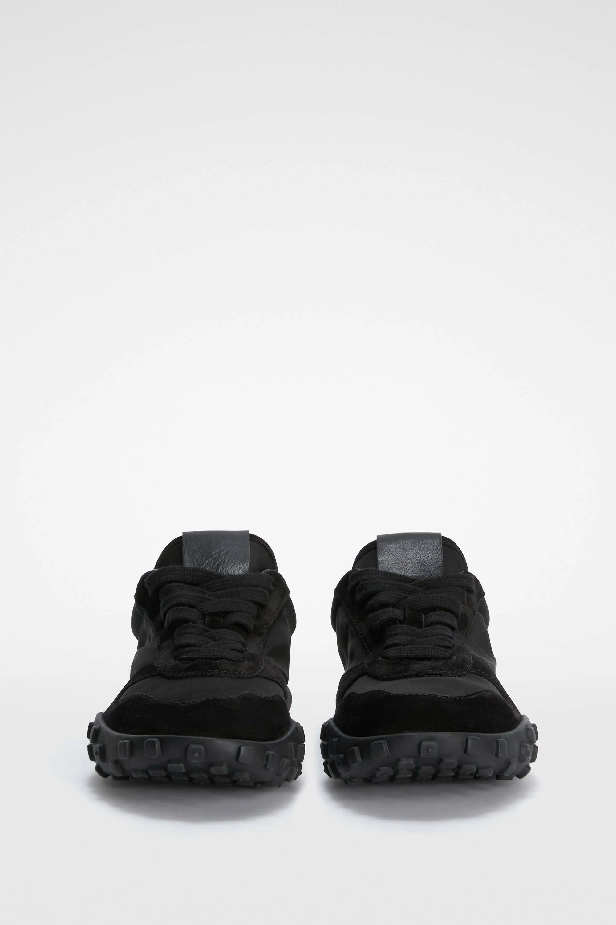 Low-top nylon and suede sneakers with rubber pebbles outersole Details - round toe and lace-up front - satin-effect nylon upper with suede trims - nylon and nappa lining - rubber pebbles outersole with embossed Jil Sander logo - fabric tongue with leather patch - Jil Sander logo embossed on back tab - Jil Sander logo branded insole - upper 100% polyester, suede trims 100% calf leather - made in Italy - StyleID: J16WS0031P0156001