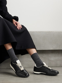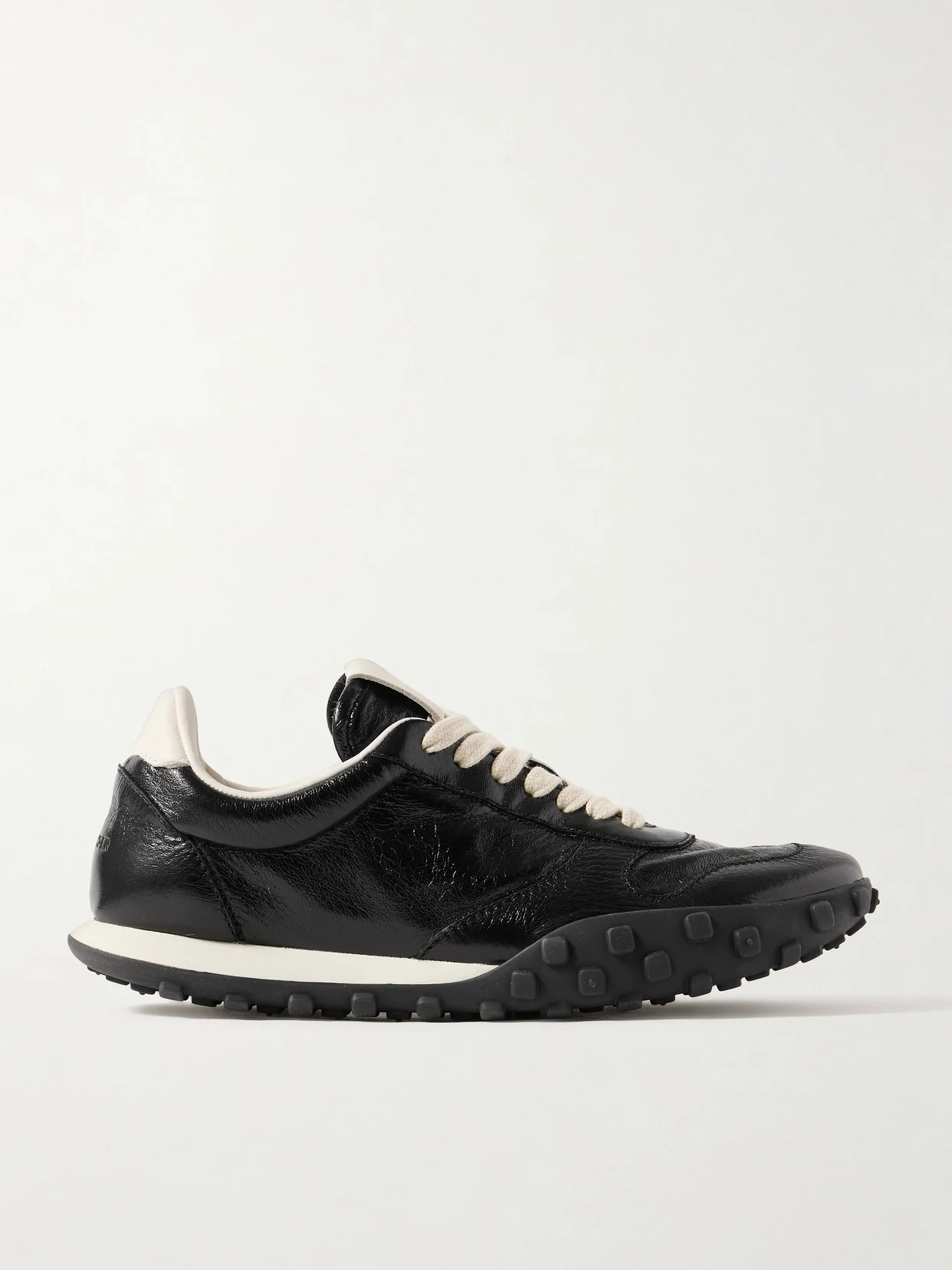The versatile black and off-white colorway of Jil Sander's sneakers means they'll go with just about any outfit. Made from panels of glossy leather, they have pebbled soles inspired by vintage driving styles and are subtly embossed with the label's moniker at the back.