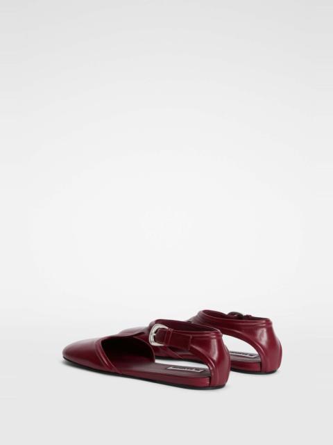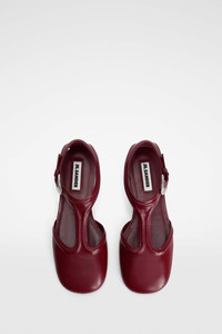 Leather flat Mary Jane with t-bar and adjustable ankle strap with metal buckle Details - round toe with t-bar strap - adjustable ankle strap with metal buckle - nappa leather insole and lining - calf leather outersole with rubber injection - Jil Sander logo branded insole - upper 100% goat leather, lining and insole 100% ovine leather, outersole 100% calf leather - made in Italy - StyleID: J16WP0131P8226609
