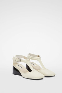 Leather Mary Jane pump with black cut-out platform heel Details - round toe with t-bar strap - adjustable ankle strap with metal buckle - nappa leather insole and lining - calf leather outersole with rubber injection - black platform cut-out heel - Jil Sander logo branded insole - upper 100% goat leather, lining and insole 100% ovine leather, outersole 100% calf leather - made in Italy - StyleID: J16WM0004P8226105