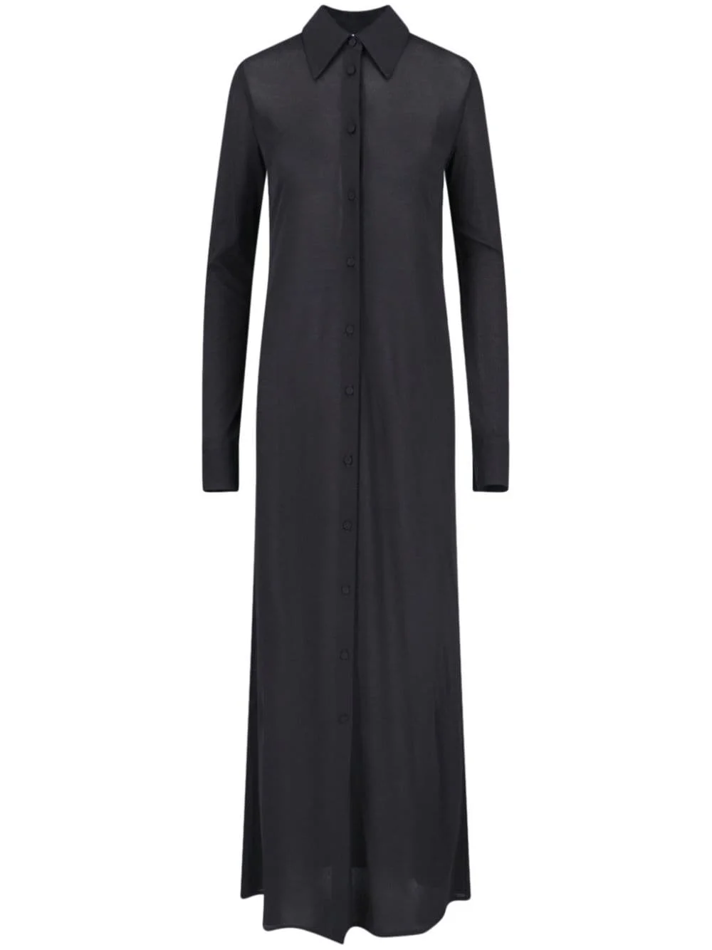 maxi shirt dress Highlights - Black - Silk - Front button fastening - Classic collar - Flared design - Long sleeves - Buttoned cuffs - Straight hem Made in Italy Composition Silk 100%