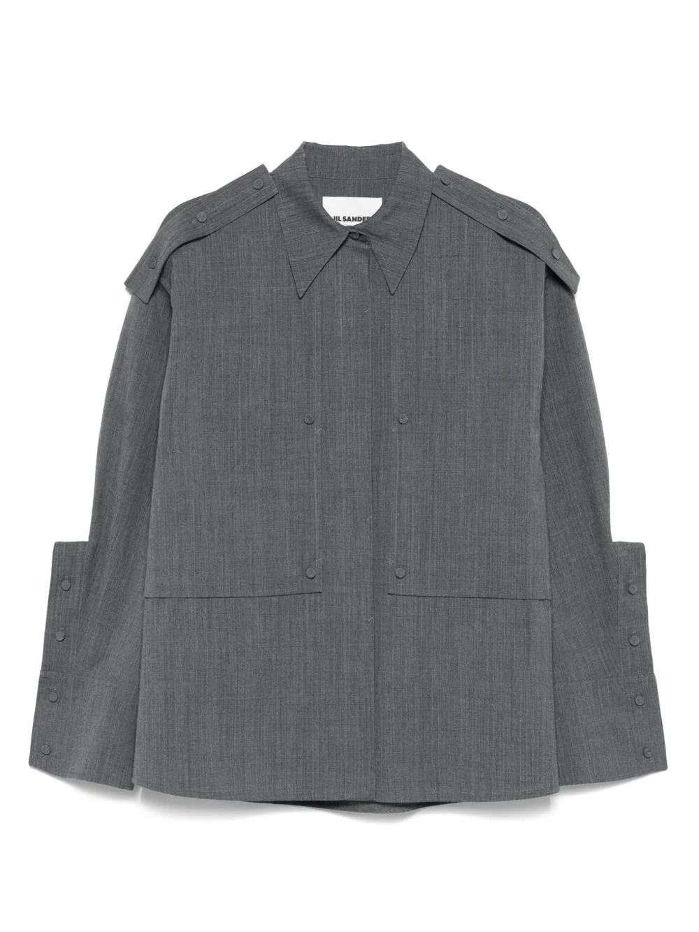 maxi-cuff shirt Highlights - Charcoal grey - Oversized pointed collar - Concealed front button fastening - Epaulettes - Buttoned-cuff sleeves Made in Italy Composition Outer: Wool 100% Lining: Viscose 100% SIZE & FIT Model measurements Height 5 ft 11 in(1.8 m) Bust/Chest 31.49 in(80 cm) Hips 36.61 in(93 cm) Waist 24.4 in(62 cm) FittingInformation Designed to be unstructured, offering a loose fit throughout Made from a midweight non-stretch fabric, this piece offers minimal elasticity when worn
