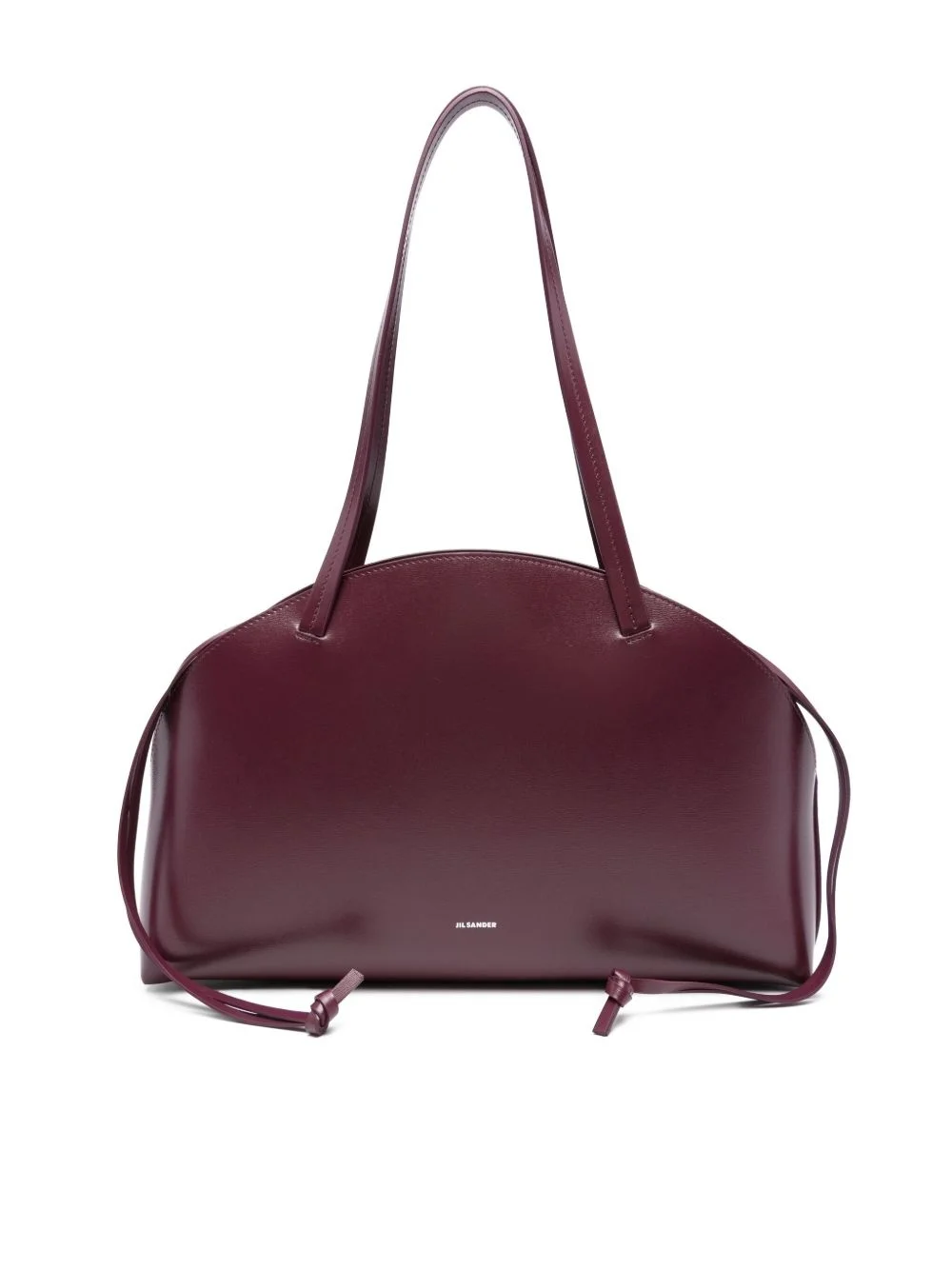 medium Curve shoulder bag Highlights - Burgundy - Side drawstring fastening - Two top handles Made in Italy Composition Outer: Calf Leather 100% Lining: Lambskin 100% SIZE & FIT Model measurements Height 5 ft 11 in(1.8 m) Bust/Chest 31.49 in(80 cm) Hips 36.61 in(93 cm) Waist 24.4 in(62 cm) Measurement DEPTH 2.75 in(7 cm) HEIGHT 9.05 in(23 cm) STRAP 24.8 in(63 cm) WIDTH 14.56 in(37 cm)