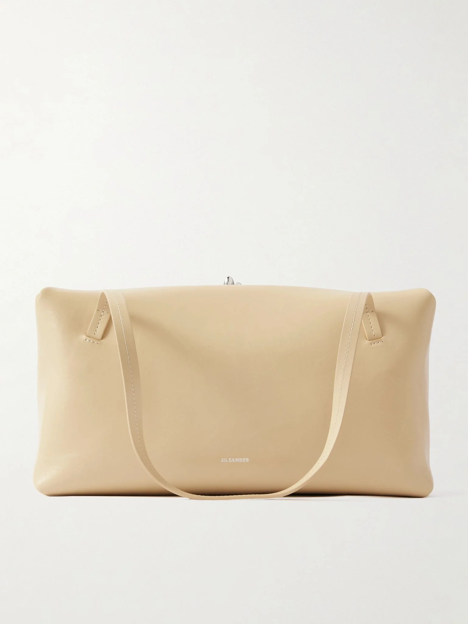 Jil Sander’s medium-sized tote has a softly structured vintage-inspired profile. It’s been made in Italy from leather that's stamped with the logo and has a silver-tone frame and slim top handles. There's enough space inside for your cardholder, phone and a few makeup essentials. Details & Care - Cream leather (Calf) - Top handles - Internal slip pocket - Unlined - Clasp fastening at top - Comes with a dust bag
