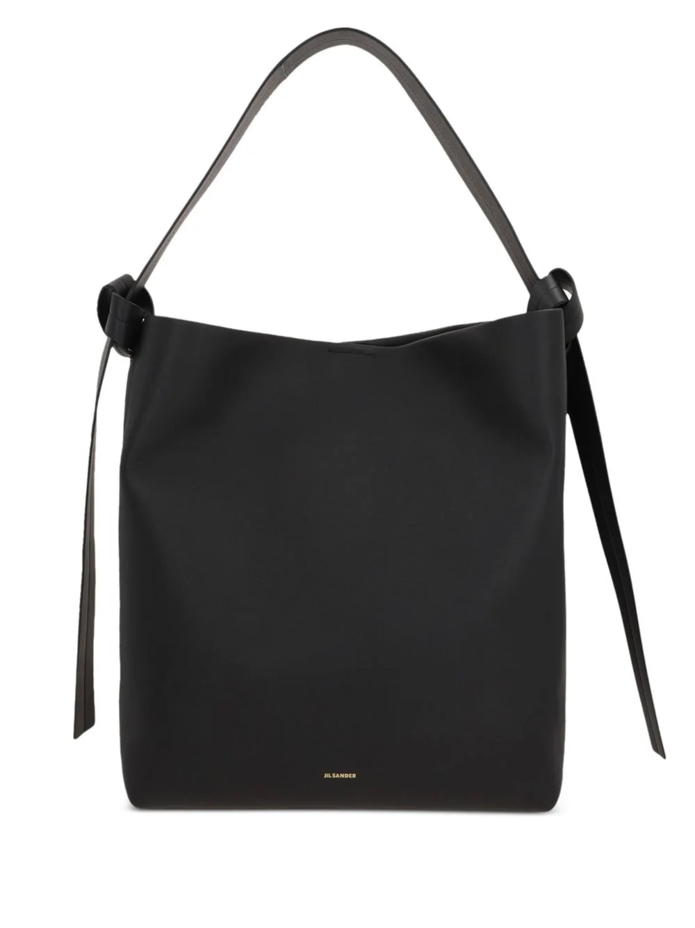 medium Knot shoulder bag Highlights - Black - Magnetic fastening - Adjustable shoulder strap - Internal pocket - Embossed logo to the front Made in Italy Composition Outer: Calf Leather 100% SIZE & FIT Measurement DEPTH 4.92 in(12.5 cm) HEIGHT 13.38 in(34 cm) WIDTH 11.41 in(29 cm)