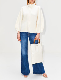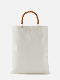 Held by double bamboo handles with chic gold rings, the rectangular body flaunts a croc leather design. The tote is stamped with a center-front leather patch that's embossed with the Jil Sander logo. Designer Details 100% calfskin H 16.5 x W 18.5 x D 4.3 in Made in Italy - Item # 1-163423