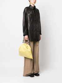 metallic top-handle leather tote bag Highlights - Pastel yellow - Calf leather - Silver-tone hardware - Elasticated toggle detailing - Single metallic top handle - Adjustable detachable shoulder strap - Main compartment - Internal patch pocket Made in Italy Composition Outer: Calf Leather 100% SIZE & FIT Model measurements Height 5 ft 11 in(1.8 m) Bust/Chest 31.49 in(80 cm) Hips 36.41 in(92.5 cm) Waist 25.59 in(65 cm) Measurement DEPTH 0.78 in(2 cm) HANDLE 2.75 in(7 cm) HEIGHT 14.17 in(36 cm) STRAP 7.48 in(19 cm) WIDTH 14.17 in(36 cm)