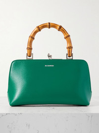 Jil Sander’s tote is characterized by the signature bamboo top handle. It’s crafted from leather with enough space for small essentials, like your phone and lipstick, and features a zipped internal pocket to secure your cards. Details & Care - Green leather (Calf) - Top handle, detachable adjustable leather shoulder strap - Internal zipped pocket - Clasp fastening at top - This style is made with natural bamboo and as such may have small indentations