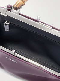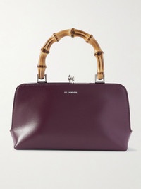 Jil Sander’s tote is characterized by the signature bamboo top handle. It’s crafted from leather with enough space for small essentials, like your phone and lipstick, and features a zipped internal pocket to secure your cards. Details & Care - Burgundy leather (Calf) - Top handle, detachable adjustable leather shoulder strap - Internal zipped pocket - Clasp fastening at top - This style is made with natural bamboo and as such may have small indentations