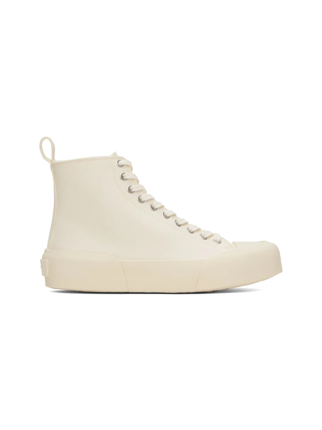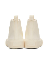 High-top cotton canvas sneakers in white. · Rubber cap toe · Lace-up closure · Pull-loop at heel collar · Logo patch at padded leather footbed · Canvas lining · Rubberized logo patch at heel counter · Textured rubber sole Supplier color: Porcelain Upper: textile. Sole: rubber. Made in Spain 232249F127000