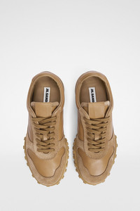 Low-top nappa leather and suede sneakers with rubber pebbles outersole Details - round toe and lace-up front - nappa leather upper with suede trims - rubber pebbles outersole with embossed Jil Sander logo - fabric tongue with leather patch - Jil Sander logo embossed on back tab - Jil Sander logo branded insole - upper 100% ovine leather, suede trims 100% calf leather - made in Italy - StyleID: J16WS0031P7394235