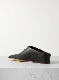 EDITORS'NOTES Jil Sander's mules have a sleek design enhanced by the covered wedge heel and slim, squared toe. They're made from leather and are minimally detailed, so they'll go with so many outfits throughout the seasons. SIZE & FIT - Fits true to size, take your normal size - Italian sizing DETAILS & CARE - Wedge heel measures approximately 30mm/ 1 inch - Black leather - Slip on
