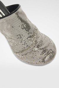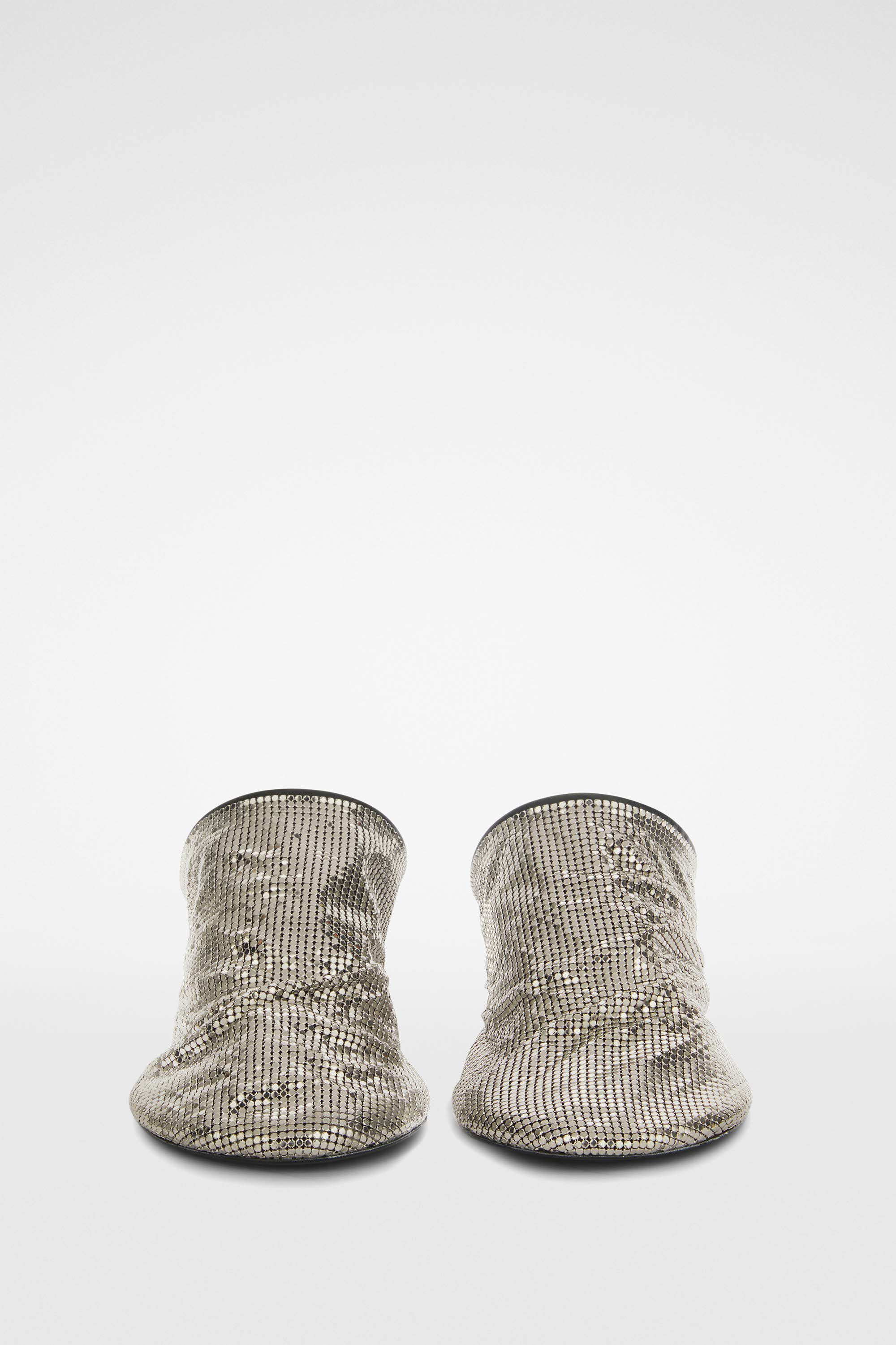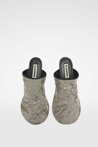 Leather and brass mesh mules with pin heel and exaggerated round toe Details - exaggerated and deconstructed round toe - nappa leather insole and lining - calf leather outersole - Jil Sander logo branded insole - upper 100% brass, lining 100% ovine leather - made in Italy - StyleID: J16WP0099P8023045