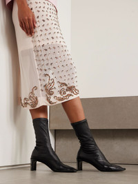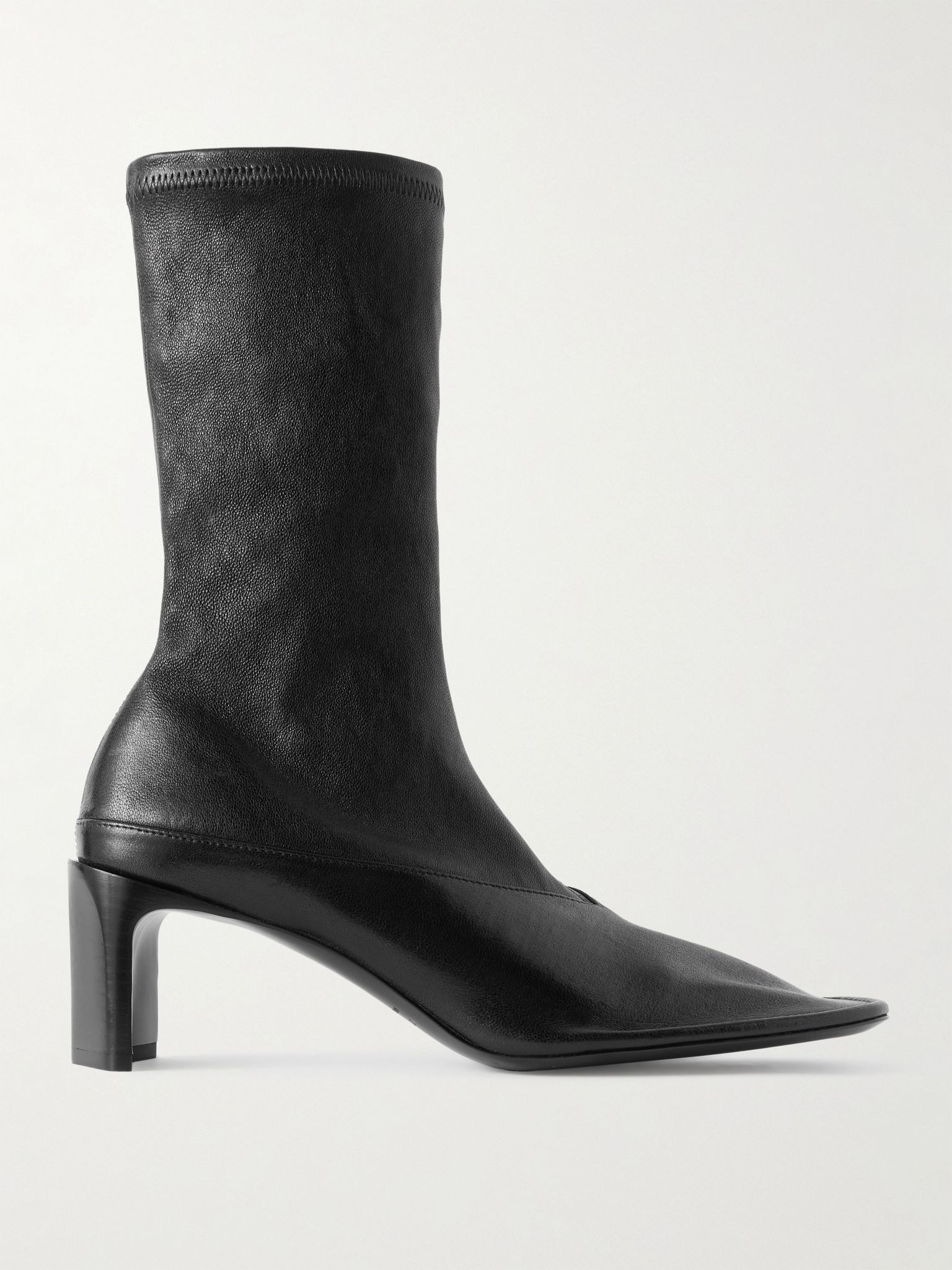 Designed to transcend trends, Jil Sander’s collections embrace modernist shapes and pared-back minimalism. These ankle boots are made from soft leather for a glove-like fit and have unstructured toes and sculptural block heels. Wear yours with jeans or dresses. Size & Fit - Fits true to size, take your normal size - Italian sizing Details & Care - Heel measures approximately 65mm/ 2.5 inches - Black leather (Lamb) - Pull on