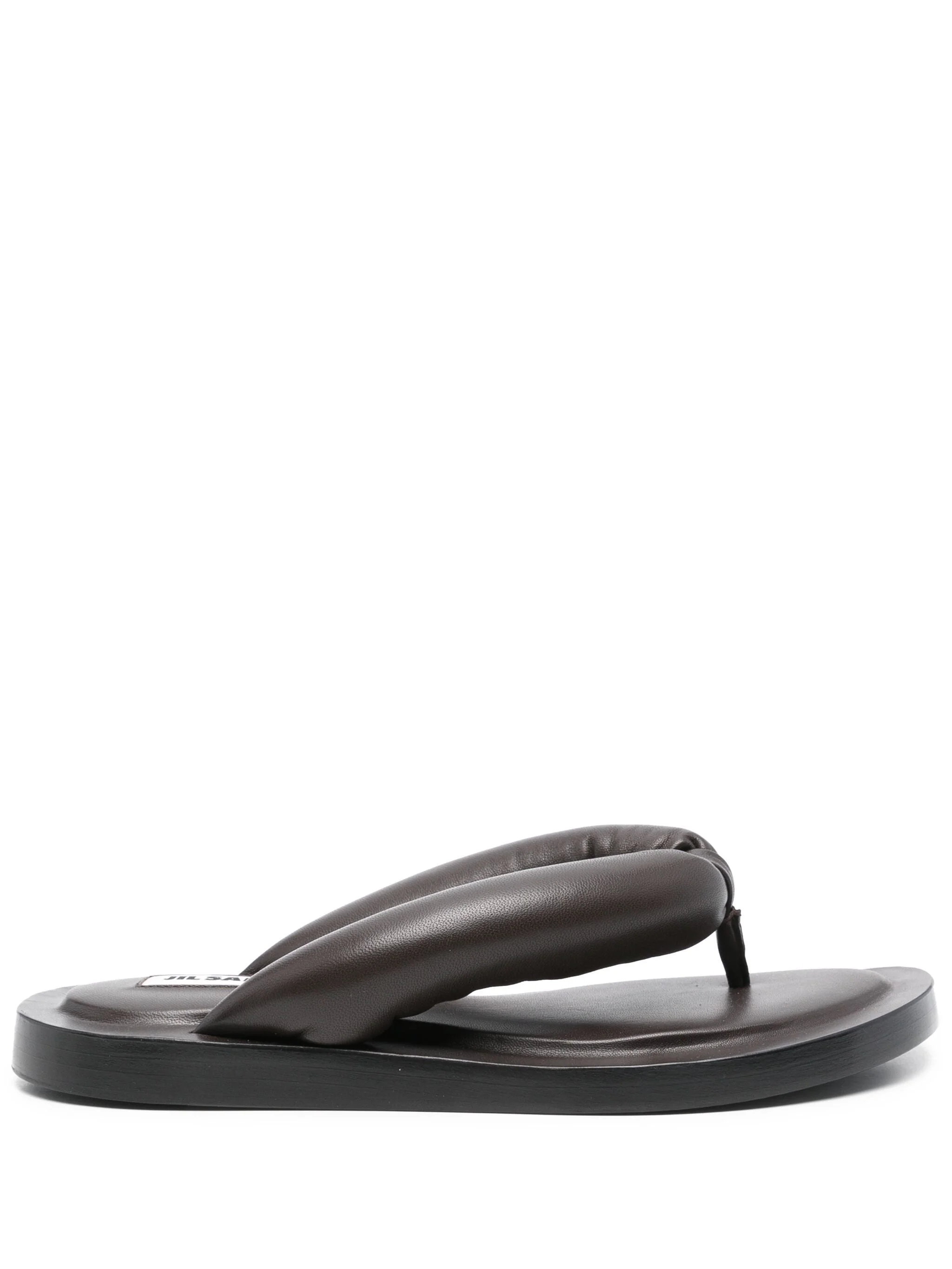 chocolate brown rubber sole branded leather insole thong strap This piece comes complete with a protective dust bag. - Color: BROWN - Made in: Italy - Designer Style ID: P5810 J44WX0014 203 Composition and care Lining Composition Calf Leather: 100.0%, Sole Composition Calf Leather: 100.0%, Outer Composition Nappa Leather: 100.0%, Sole Composition Rubber: 100.0%